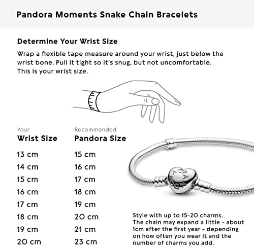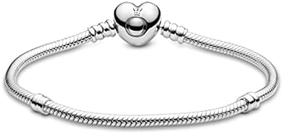 Give your collection a fresh romantic look with the Moments Silver Bracelet with Heart Clasp from Pandora. This stunning charm bracelet is crafted from polished sterling silver in the classic snake chain design featuring an exclusive love heart shaped clasp, with perfect branded engraving. Celebrate those moments which create your love story with this romantically inspired collection from Pandora. Sterling Silver: The world’s most popular silver alloy, our sterling silver consists of 92.5% silver and 7.5% other metals (such as copper). This blend is excellent for jewelry because it preserves the color, luster and the weight of silver while vastly improving the durability of your bracelets. Memories Are Forever: Important milestones and moments are here to stay. Perfect gift for your wife, mother, daughter, granddaughter, niece, or any charm bracelet beginner. Mark your loved one's big day (wedding, sweet 16, new baby, Mother's Day, etc.) with the gift of expressing their individuality through their fashion and style. Tell Your Story With Charms: All women have their own individual stories to tell, a personal collection of special moments that makes them who they are. We celebrate these memories that bring us together and make us who we are. Manufactured Responsibily: At Pandora, we believe that responsible business practice and our aspiration to offer high quality jewelry go hand in hand. We're committed to developing and manufacturing responsibly, for our teams, and to minimize our environmental impact on the planet.         #82,934 in Clothing, Shoes & Jewelry ( )   #15 in