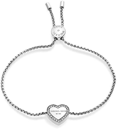 The Michael Kors jewelry collection is designed for timeless appeal. Crafted from hypoallergenic materials like stainless steel and brass with sparkling accents, rich in detail with enduring quality. A perfect gift for that special someone, this sweet Michael Kors Jewelry slider bracelet is set with a polished silver-tone heart charm with pavé crystal halo. This chain bracelet features silver-tone stainless steel and an adjustable slider closure. Inner Diameter 2.25" Closure Type: Slider Finish: Polished         #310,284 in Clothing, Shoes & Jewelry ( )   #134 in