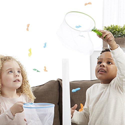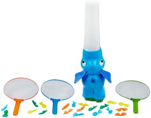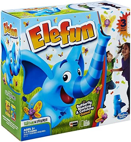 FUN MUSIC AND SOUNDS: The motorized Elefun elephant begins the game with a trumpet call. Then it plays music throughout the game while it blows butterflies out of its long trunk    INCLUDES BUTTERFLY NETS: In this lively and active game, kids can chase the butterflies that come out of the elephant's 3 foot trunk. The game includes 20 colorful butterflies and 3 butterfly nets    GET UP AND GET SILLY: This game gets kids up and about, running around in all different directions as they try to catch the most butterflies to win    CATCH THE BUTTERFLIES: Kids can join the Elefun elephant in this fluttery butterfly chasing game. Butterflies will be blown out of his trunk while the kids use their nets to chase butterflies around the room.    EASY STORAGE: Finished playing. The Elefun Flyers game features easy storage. Load the flyers into the elephant's tummy compartment, and hang the nets on the trunk