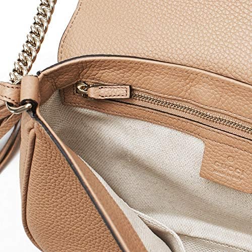 This beautiful embossed camelia beige crossbody is the perfect bag for any everyday look or dressed up for a night out. The color makes it easy to match everything in your wardrobe and the classic embossed Gucci logo makes it a complete classic piece for any handbag collection. The detachable leather tassel is a perfect fun touch to this bag. Though lightweight and its small appearance, this bag is large enough to easily carry all of your essentials. Model: 536224 Beige Textured Calf Leather Gold-Tone Hardware Gucci GG Embossed Logo Detachable Tassel Accent Gold Chain Strap Front Flap Magnetic Snap Closure Tan Canvas Interior lining One Interior Zip pocket One Interior Slip pocket Strap Drop: 21.5" inches Measurements: 11" x 3.5" x 6.75" (LWH) #2,756,533 in Clothing, Shoes & Jewelry ( ) #11,887 in