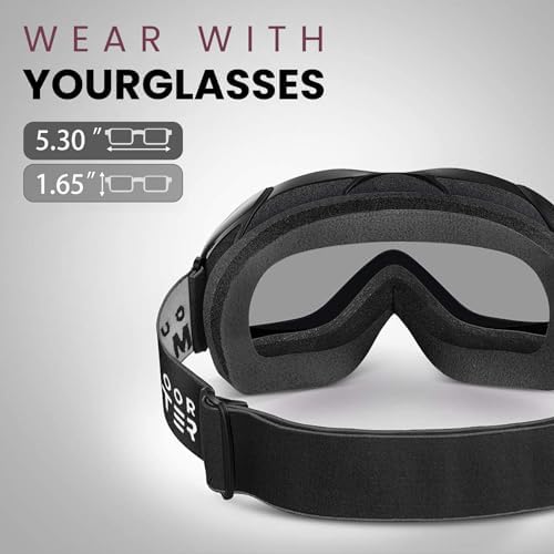 OTG (OVER-THE-GLASSES) DESIGN - Ski goggles that fits over glasses. Suitable for both ADULTS AND YOUTH.    ANTI-FOG LENS & EXCELLENT OPTICAL CLARITY - Dual-layer lens technology with anti-fog coated inner lens gives you a FOG-FREE SKI EXPERIENCE.    SAFE & RELIABLE WITH UV PROTECTION - Soft TPU frame with lenses that provide 100% UV400 protection and YEARS OF RELIABLE USE.    UNIVERSAL HELMET COMPATIBILITY - Extra long elastic strap ensures great helmet compatibility with all helmets. Suitable for both adults & teens.    WHAT YOU GET: 1 x OutdoorMaster OTG Ski Goggles, 1 x Carrying Pouch, CUSTOMER-FAVORITE LIFETIME WARRANTY and friendly customer service.