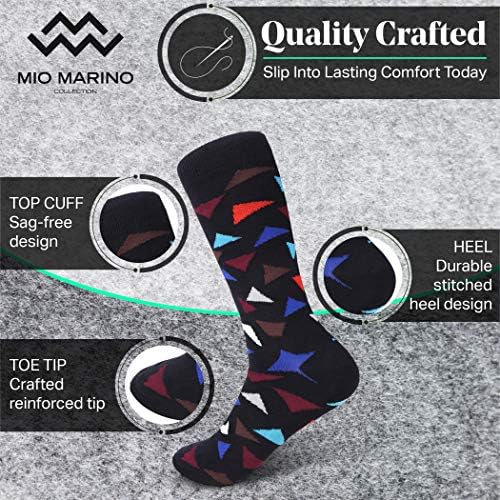 MOISTURE CONTROL - Mio Marino’s cotton socks keep your feet fresh and dry. These dress socks are super comfortable, extremely breathable. MAXIMUM DURABILITY - These men's socks are fabricated with 80% cotton 10% spandex and 10% polyester to keep elasticity and softness. HIGHLY CLASSY - Our socks for men are fashionable and colorful to match up with all your favorite clothes for every day. MACHINE WASHABLE - For a definitive long-lasting result wash colored socks with like colors and tumble dry medium. ORDER WITH GRACE - Our mission is for you to be fully satisfied with the socks you purchased, Therefore, we offer free exchange and return any time without hesitation.         #19,900 in Clothing, Shoes & Jewelry ( )   #63 in