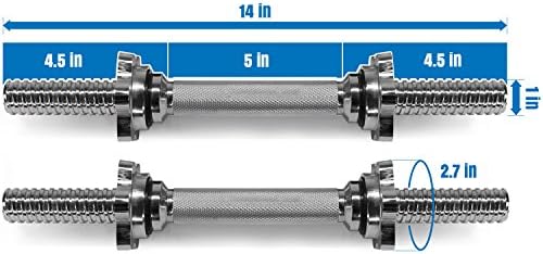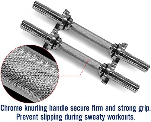DURABLE FITNESS INVESTMENT: Yes4All adjustable dumbbell handles' material prevents bending from constant usage. Made from quality steel with textured chrome coating, dumbbell barbell connector bar is both sturdy & comfortable for prolonged workouts    SECURE GRIP ASSISTANCE: Experience certain and non slip workouts with our adjustable dumbbell bars. The deep knurling and textured powder-coated steel prevent slips, while the design caters to sweaty hands, ensuring effect during your workouts    EASY & SECURE WEIGHT ADJUSTMENT: Our dumbbell handles 1 inch pair feature threaded connectors with 4 star collars & rubber trims to keep plates stable & secure. This allows for customized workouts & gradual strength progression as you change weights    SNUGLY HOLD 1 INCH PLATES: The Yes4All connector fits various 1" dumbbells. Standard hand weight bar size ensures effortless installation. The package includes TWO 13.75" chrome steel handles & FOUR collars featuring rubber trims for a secure fit    EXPAND WORKOUT POTENTIAL: Our 1 inch dumbbell bar connector features extended sleeves, offering more space to load additional weight plates. Whether starting out or advancing, customize routine and steadily increase strength with adjustable design