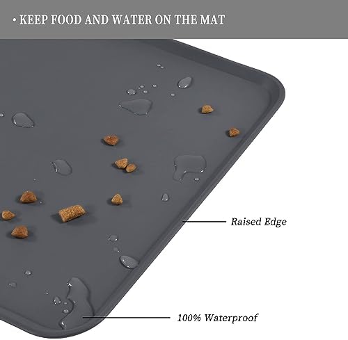 PREMIUM QUALITY SILICONE: Made from food grade silicone without any harmful BPA, our pet feeding mat provides a cleaner and more hygienic dining experience for both you and your furry companion. With a heat resistance of 464°F, it's perfect for your pet's favorite hot meals.    VARIOUS SIZES AVAILABLE: Our pet mats come in 5 different sizes - 18.5" x 11.5", 20" x 15", 24" x 16", 28" x 18", and 34.5" x 23". Suitable for all kinds of pets, from puppies to large pets, choose the perfect size for your furry friends and avoid messy spills at mealtime.    ANTI-SLIP DESIGN: Our non-slip pet feeding mat ensures stability for your pet's bowl, preventing any water stains or spills on the floor. Enjoy peace of mind when feeding your pet, knowing that their food stays in place.    HIGH-RAISED EDGES: Say goodbye to messy floors with our mats' high-raised edges that protect your floors from spills and splashes. Keep food and water contained and your floors mess-free.    EASY TO CLEAN: Our pet feeding mats make cleaning a breeze. Simply wipe them down with water or a wet cloth, or toss them in the dishwasher for easy cleaning. Keep your home clean and tidy with our easy-to-use mats.           #126 in Pet Supplies ( )   #1 in   #2 in