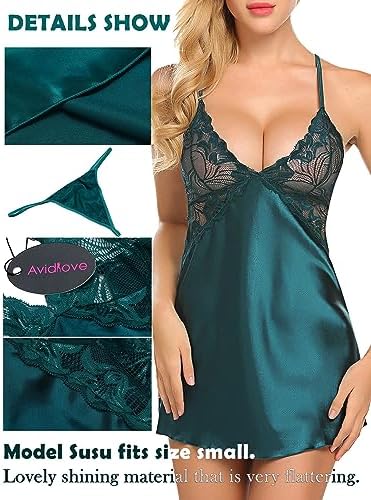 Lightweight, soft, and breathable quality fabric. This women's lingerie features a v neck front and the simple A-line style. It inspires sultry flirtation and your true beauty ❤Silky Satin Chemise Lingerie - Crafted with luxuriously soft satin and lace to show off your elegance and sexy in sultry sophistication. ❤Beautiful Floral Lace - Beautiful scalloped floral lace detailing over cups and bottom that will heat up the bedroom with this sassy satin chemise. ❤Breathable & Comfortable - Feel the cozy and freedom all night long when wearing this smooth and skin-soft satin chemise lingerie. ❤Multi-color choices available, Black/Green/Red/Purple, etc. Various sizes for choosing from. Please refer to the size chart before ordering.         #2,530 in Clothing, Shoes & Jewelry ( )   #5 in