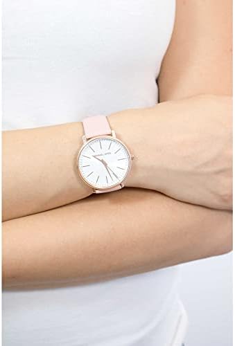 This rose gold-tone Michael Kors Pyper watch features a minimalist white sunray dial with rose gold-tone stick indexes and a pavé stone at each hour mark. A blush leather strap completes the look. Case & Dial: Round 38mm stainless steel case with a white dial; mineral crystal face resists scratches Watch Band: Genuine blush pink leather band with adjustable buckle closure; 18mm band width Movement: Quartz movement with three-hand analog display; imported Water Resistant: Up to 50m (165ft): Wearable while swimming in shallow water; 5 ATM         #23,533 in Clothing, Shoes & Jewelry ( )   #53 in