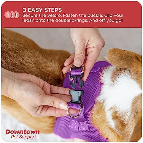 No Pull Harness for Dogs: Our soft dog harnesses feature all-weather and fast-drying padded mesh fabric that ensures your furry friend stays comfortable during walks, runs, and outdoor adventures    Enhanced Visibility: With reflective trim on this dog walking harness, you can keep your pet safe and visible during low-light conditions or nighttime walks without additional accessories    Secure and Simple to Use: Equipped with a strong hook and loop closure, quick-release buckle strap, and double D-rings, this no escape dog harness is designed to provide maximum security and control    Durable and Long-Lasting: Made with high-quality materials, our dog body harness is built to withstand daily wear and tear, providing your pet with long-lasting comfort and security    Size Chart: Please refer to our step in harness sizing chart to make sure you select the right dog chest harness for your pet to provide a perfect fit           #1,167 in Pet Supplies ( )   #12 in