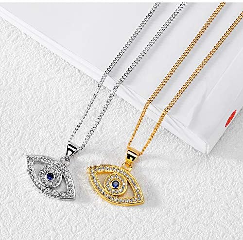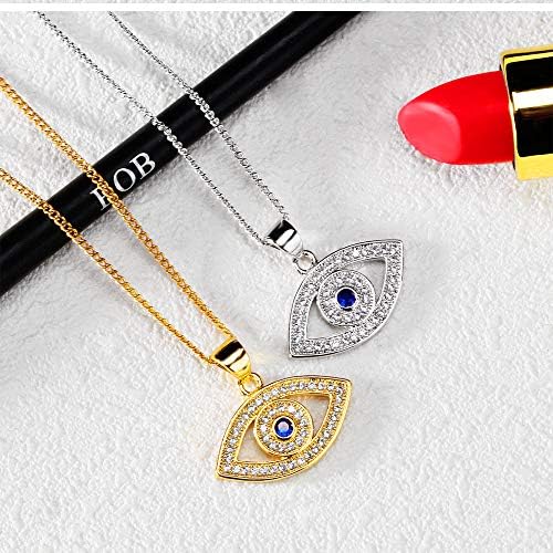 Fashion Jewelry;18K Yellow Gold Plated & White Gold Plated CZ Evil Eye Pendent necklace with Mini Cubic Zirconia Cobalt Blue Glass Center Stone For Women Teen Girls.Pendent Dimensions: 7mm x 17mm. Material: environmental friendly copper alloy, product’s surface is rhodium-plated or gold-plated.Cadmium Free and Nickel Free, No Harm to Human Body. The auxiliary material is high-quality AAA Cubic Zirconia and other gemstones. These necklace look and sparkle like genuine diamonds sure. Wearing A Evil Eye Hamsa Hand Amulet Jewellery Always Watching You Out From Danger, Provides Protection Against Evil Forces Also Provides Blessing, Fortune, Peace, Good Health, Wealth and Happiness! For any cocktail or daily wear, perfect idea gift for wife, daughters, friends, lovers for the valentine's day, mother's day, anniversary, engagement or christmas.Free jewelry brand box, making it easy for you to surprise your special someone or keep it safety.Ideal gift to your loved one. Satisfied Guarantee: Promise 90-day Exchange or Money Back Guarantee, If You Have any Dissatisfied with the Item. #1,522,507 in Clothing, Shoes & Jewelry ( ) #80,771 in