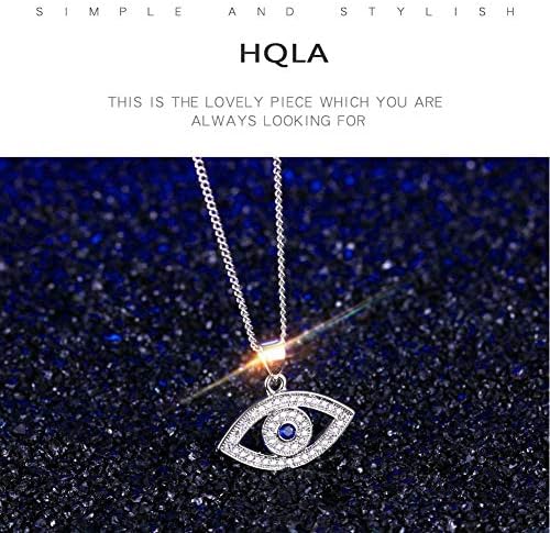 HQLA 18K Yellow Gold Plated & White Gold Plated CZ Evil Eye Pendent necklace with Mini Cubic Zirconia Cobalt Blue Glass Center Stone For Women Teen Girls