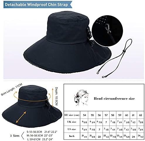 SIZE - Small best fits for 55-56.5CM 21.6"-22.2"; Medium best fits for 56-58.5CM 22"-23"; Large best fits for 59-61CM 23.2"-24". DETACHABLE CHIN STRAP: adjustable for a better fit; won't blown off when it gets windy. SPF 50+: this sun hat has passed UPF 50+ test, it could block 97.5% or more of sun UV rays. Great ventilated to keep you cool in summer. WIDE BRIM: measures 4"-4.7" in length, is large enough to shade forehead, neck and cheeks from sun lights. Ponytail Hole - great to pull your bun or ponytail through during summer days.         #218,589 in Clothing, Shoes & Jewelry ( )   #592 in