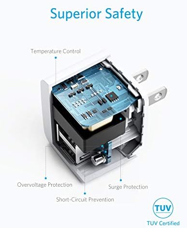 Exclusive Technology: Anker’s world-famous PowerIQ detects your devices and adjusts voltage output accordingly, delivering a tailored, optimized charge.    Simultaneous Charging: Charge any 2 devices at the same time; phones, tablets, headphones, portable chargers, and more (does not support Qualcomm Quick Charge).    Travel Ready: Smaller than a golf ball, and equipped with a foldable plug, this charger is the ultimate travel companion.    Superior Safety: Anker’s MultiProtect 11-point safety system provides all-round protection for you and your devices.    What You Get: 2× PowerPort mini compact wall chargers, welcome guide, our worry-free 18-month warranty, and friendly customer service.