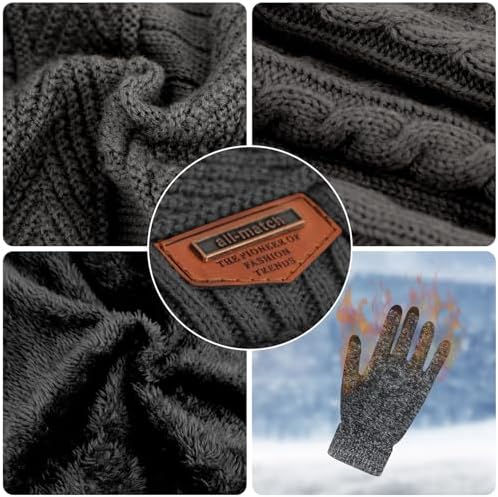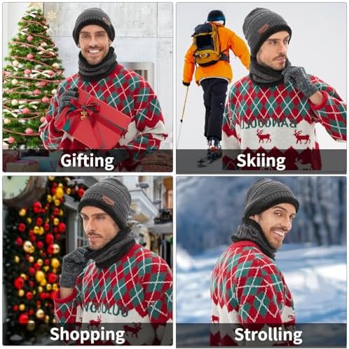 MAYLISACC Winter Knit Beanie Hat Neck Warmer Scarf and Touch Screen Gloves Set 3 Pcs Fleece Lined Skull Cap for Men Women