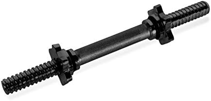 ✔SPECS – 14” x 1.3” x 1.3”; 3.2 pounds    ✔CONSTRUCTION – Made with solid steel and covered in a black powder coat finish; accommodates weight plates with a 1-inch center hole.    ✔FEATURES – This dumbbell bar fits 1-inch plates up to a recommended weight capacity of 100 lbs. & features threaded ends with star lock collars to prevent weights from slipping. Add variety by interchanging weights during weight lifting routines.    ✔TRUST – Trust experience. CAP has been a pioneer in the fitness industry for over 30 years and has locations worldwide. Chances are if you have ever workout out, you have worked out with a CAP product.    ✔WARRANTY - 30 day limited manufacturer's warranty