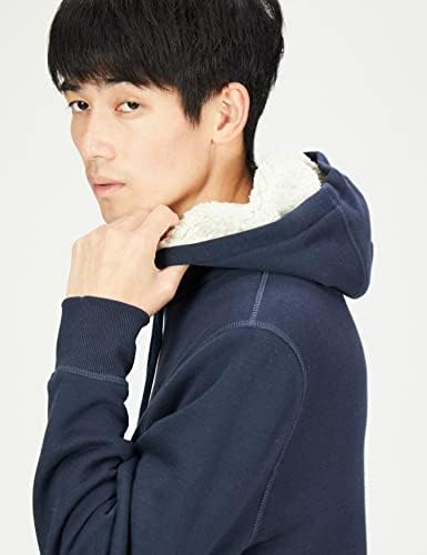 REGULAR FIT: Comfortable, easy fit through the shoulders, chest, and waist BRUSHED FLEECE: Midweight 8.3 oz soft brushed-back cotton-polyester blend fleece for staying cozy and keeping warm. Hood and body lined with cozy sherpa fleece. Sleeves lined with jersey. EVERYDAY CASUAL STYLING: This classic pullover hoodie is a go-to cold weather layer with cozy sherpa lining. Match-back to Amazon Essentials Men's fleece joggers or pair with jeans for everyday on-the-go. DETAILS: Features hood with drawstring and metal grommets, front kangaroo pocket, and ribbing at the hem and cuffs. LENGTH: 28" from side neck on US size M.         #2,069 in Our Brands ( )   #25 in   #430 in   #866 in