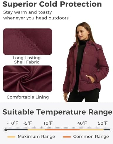 Recycled Fabric and Filling - The winter jacket for women is made with renewable fabric and filling, which requires far fewer resources than new fibers and generates fewer CO2 emissions. With a 10,000mm waterproof rating, the women's puffer coat keeps you dry in the rain or warm in snowy weather at all times Against the Wind & Chill - Wear the women's puffer jacket to stay ultra comfy during winter. The warm winter coat for women is padded with a long-lasting shell that ensures outstanding windproof and thermal properties, keeping you stay toasty warm all day long. Our outdoor apparel is suitable for a variety of activities, such as casual wear, outdoor work, travel, cycling, and hiking Protective Thermal Properties - Pull the adjustable hood of the thickened coat up to keep your ears and face warm. The hooded puffer coat's collar, padding, ribbed elastic cuffs, and adjustable drawstring further keep you insulated against the frost Always in Style - The women's winter coat is made available in 11 different modern and stunning colors. Choose from 6 sizes to ensure a custom, comfy, and figure-flattering fit, and show off your classic taste in clothing by sporting the zip-up jacket Never Lose Things in The Snow - Count on the women's coat to help you enjoy the outdoors. It has 4 reinforced pockets for keeping all your essentials, keys, phones, wallet, and small items safe. Enjoy the outdoors with the ladies' puffer jacket that lets you keep everything within reach #21,901 in Climate Pledge Friendly ( ) #61 in #4,249 in
