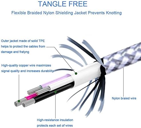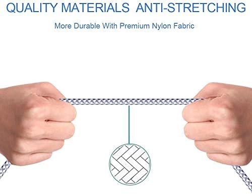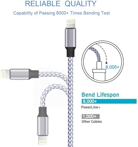 STRONG MATERIAL: iPhone cable With 8000+times bend lifespan and integrated molding process, the nylon braided jacket is super smooth and comfortable, more strong than standard iPhone charger cord.    PERFECT LENGTHS: Perfect 6feet extra long iphone charger cable free up your charging time, no more being stuck to wall socket, ideal for using at home, in car and office.    QUALITY COPPER WIRE: Connects to your iPhone, iPad with Connector charges/syncs by connecting the USB connector into wall charger or computer. Enjoy charge times up faster than than most standard cables.    2 N 1 FUNCTION: Great performance ensures your devices syncs and charge simultaneously with up to 480 mb/s . It syncs photos, music, videos, files with the ability to charge the device. also delivers up to 2.1A current to maximize the charging efficiency performance.    UNIVERSAL COMPATIBILITY: Work with iPhone 14,13,12,11,11 Pro, 11 Pro Max, XS Max, XS, XR, X, 8 Plus, 8, 7 Plus, 7, 6S Plus, 6S, 6 Plus, 6, 5S, 5C, 5, iPad Pro, iPad Air, Air 2, iPad mini, mini 2, mini 4, iPad 4th gen ,iPod Touch 5th gen, iPod nano 7th gen and Beats Pill+