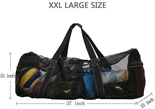 100% polypropylene    Large beach bags and totes - 37"x 15"X 15" huge storage space, perfect to Stores all your towels, sunscreen, snacks and other equipment for scuba diving or snorkeling gear.    With extra exterior pockets, our mesh dive gear bag has 2 zipper pockets at each end to place items that you do not want to go in the main compartment. Keep your valuables safe and carry more items.    Widely Use: 1 - Large beach bag for the beach and pool and boat bag scuba. 2 - Mesh snorkel gear bag carry all your your fins, goggles, mask, wetsuit, regulator, shoes, BCD and more dive gear. 3 - Large duffel bag for your GYM items, and good for your family travel use.    Lightweight, Breathable Design – Open air mesh Design allows for easy drying, avoiding mold or mildew on your towels or dive equipment.    Super Durable: Constructed of durable 600D Polyester and mesh, the mesh bag is functional, yet durable. / If you are not satisfied with your purchases, just contact us via your Amazon account. Your problem should be solved.