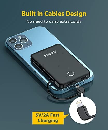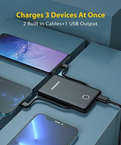 ♋♋ With Dual Charging Cables Attached: Power bank with built in cables for iPhones and Android phones charging at any time and any where, you don't need to bring extra cords for your phones charging, it's very convenient on-the-go for an emergency phone battery drain.    ♋♋ Real Battery Capacity 6000mAh Power Bank:This power bank 6000mah battery capacity can meet daily cell phone power supply,can charge all cell phone models, can fully charge a phone more than 1.2 times.    ♋♋ Credit Card Sized Ultra Thin Portable Charger: Small portable charger just only weights 0.26lb/113g, ultra slim lightweight and compact size make it easier to put in any pocket. External battery bank with mini shape so you can easily carry without adding burdens.    ♋♋ Micro and Type C Input Fast Recharge Power Bank: Comes with the USB C charging cable for power bank recharge, supports micro and Type-C input, it's only 3 hours can fully charge power bank when use 5V 2A adapter.    ♋♋ Wide Compatibility: Small 6000mAh portable phone charger is widely used in all kinds of cell phone models like iPhone 15 14 13 12 11 XS XR 8 7 6 and more, Samsung Galaxy S23 S22 S21 S10 S10+ S10 5G S9 S9+ S8 and more, Google Pixel 7 Pro 6 6 pro 5 4A 4 3 3A 2 and more, iPad Pro, iPad Air, iPad Mini and more.    ♋♋ Package Content: 1 x 6000mAh Power Bank, 1 x USB Charging Cable, 1 x User's Manual, also offer free 12 month warranty.