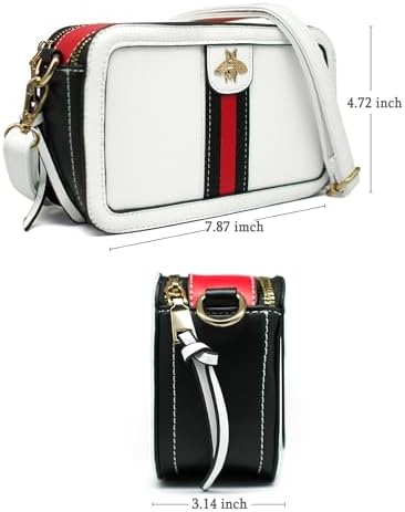 Size: 7.87 * 3.14 * 4.72 inch, bee crossbody bags for women work and everyday use PU Leather Crossbody Bag: make of high quality pu leather,is very durible and easy to clean, little bear pendant is not include Unique design: the camera style, fancy straps, bee design,give you a deep impression, make you shining in the crowd.You can have your make up, phones, wallets and keys and so on in there Detachable and Adjustable Shoulder Straps: There have the blue & red striped ribbon strap and pu leather strap, Offers versatile carrying options, as shoulde bag,crossbody bag or handbag. Guarantee: If this item doesn't meet your expectations, please do not hesitate to inform us, and our service team will provide best solution. For quality problems or defective items, there are full refunds or free         #33,409 in Clothing, Shoes & Jewelry ( )   #41 in
