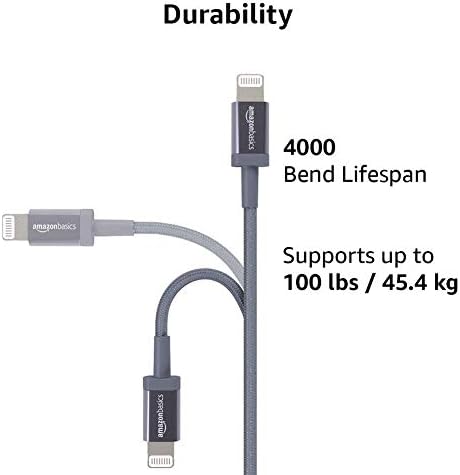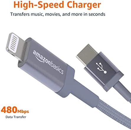 APPLE MFi CERTIFIED: Ensures complete compatibility with iPhone 14/13/12/11/X/XR/XS/8/7/6/6s/5/5s/5c, iPhone Pro 14/13/12/11, IPhone Pro Max 14/13/12/11/XS, iPhone Plus 14/8/7/6/6s, iPhone SE 1st Gen/2nd Gen/3rd Gen, iPhone mini 13/12, iPad Pro 10.5 in/9.7 in, iPad Air 3/2/1, iPad mini 5/4/3/2/1, iPad 9th Gen and older, iPod Touch 5th Gen and older, iPod nano 7th Gen and Beats Pill+    IN THE BOX: Amazon Basics Lightning to USB-C Cable for charging and syncing devices    FAST CHARGE: When used with an 18W or higher USB-C Wall Charger with Power Delivery (PD), full charge in 2 hours.    HIGH SPEED DATA TRANSFER: Up to 480Mbps for transferring music, movies, and more in seconds    DURABLE DESIGN: Built with top rated materials and tested to withstand up to 4,000 bend cycles; aluminum connector ends offer added support
