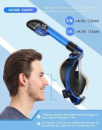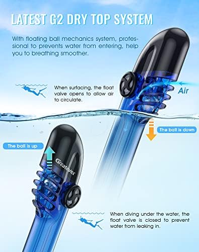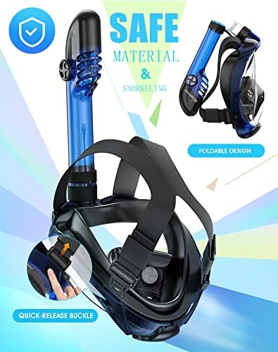 [PANORAMIC VIEW AND SUPPORT CAMERA MOUNT]Our snorkel mask adopts transparent flat lens made by high definition premium PU resin, preventing from distortion the view and eliminating the dizziness underwater. With the removable motion camera mount allows you to clearly discover the underwater world.    [G2 DRY TOP SYSTEM] G2 snorkel mask is designed by a famous designer. We adheres to folding design, as well as the addition of a two-channel exhaust valve,and to expanded the diameter of the top snorkel to 1.26 inches.    [BREATHING FREELY AND MAXIMUM AIR INTAKE] After two years of repeated exploration and improvement, our G2 full face snorkel mask has the outstanding performance in breathing and air intake. When you use our snorkel mask for surface snorkeling, you will feel comfortable and smooth breathing.    [PROFESSIONAL ANTI-FOG&ANTI-LEAK]The full face snorkel mask is made of high-quality silicone, the entire snorkel mask is fully wrapped to achieve a leak-proof effect, and the silicone layer inside the mask directly isolates the air from the nose and mouth, and the heat air is not easy to condense on the mirror surface.    [AFTER SALES SERVICE] As long as you are our customers,since the day you buy G2 snorkel mask. We will provide 24-hour uninterrupted service. We sincerelly believe we will bring the customers the most satisfied buying experience.