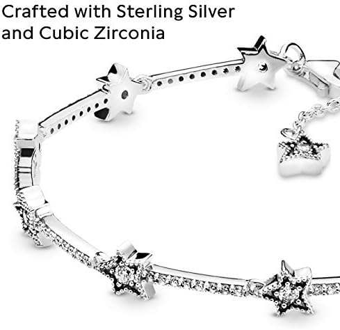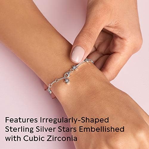 Celestial Stars Bracelet: Let yourself be inspired by a magical, dreamy world based on the mystery of the night sky and the brilliance of starlight Compatible with Pandora Moments: Pandora Moments is a way to say something about who you are through every charm and bracelet you choose and how you choose to wear it Features CZ: Cubic zirconia could be said to be the jewel in Pandora's crown, making up the majority of stones we use in our jewelry because it optically looks like a diamond Sterling Silver Jewelry: Silver is known for its soft, white surface and is Pandora's signature metal, with the majority of our jewelry created from it Official PANDORA: This authentic piece of PANDORA jewelry is ready to gift to your loved ones on Mother's Day, Christmas, birthdays, anniversaries, or any special occasions with an official PANDORA gift box