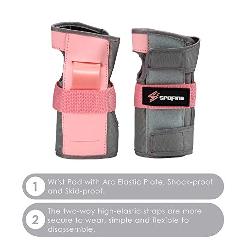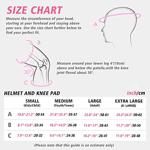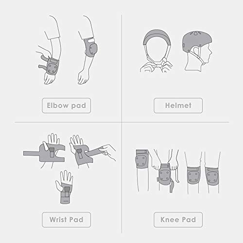 7 PIECES PROTECTIVE GEAR SET: The Package comes with 1*Helmet, 2*Knee Pads, 2*Elbow Pads and 2*Wrist Guards . They are all wrapped with mesh pocked and packed in an outer gift box.    FIT FOR MULTIPLE SPORTING PURPOSES: The essential protective gear for kids & Youth&adult outdoor activities including skateboarding, hover boarding, cycling, rollerblades, biking, will give you all-around safety protections.    MEDIUM SET FIT FOR 8 TO 14 YEARS YOUTH/ TEENS: With the adjustable straps make them flexible to fit the size of 8 to 14 years Youth / Teens with a head circumference between 21.6 to 22.4 inches (55-57 cm).    HELMET - IMPACT RESISTANCE &VENTILATION: Made of tough and durable PVC & PC, EPS foam, this bike helmet is high impact resistance. Built-in multiple vents, this cycling helmet can help to reduce sweating and keep you staying cool.    3-PACK SAFETY GEAR (Knee and elbow pads ,wrist guards ): They have the plates and protective cups made of tough plastic. The interiors consist of soft EVA plastic to make you feel comfortable.The straps can secure you nicely with adjustable Velcro closures.