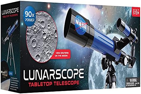 INSPIRE CURIOSITY – The NASA Lunar Telescope allows your child to see the moon in incredible detail; the perfect gift for girls and boys interested in space, the moon, and astronomy    HIGH-QUALITY OPTICAL GLASS AND FINDER SCOPE – This easy-to-use telescope comes with a finder scope, low power, and high-power eyepieces; when used correctly, this combination will allow your child to easily locate the moon and then zoom in for a close-up view    TABLETOP TRIPOD & SMOOTH MOUNT SYSTEM – Use the included tripod to steady your Lunar Telescope for optimal viewing, with a smooth mounting system that allows easy scanning of the entire lunar surface    PERFECT FOR BEGINNERS – This telescope is easy to assemble and use, making it ideal for young scientists and parents to enjoy together    HIGH-QUALITY EDUCATIONAL TOYS - We're proud to make the highest quality hands-on science toys, and all our products are backed by exceptional service. If your experience is less than stellar, let us know and we'll make things right!