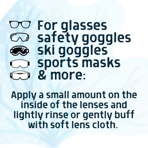 Uses anti fog formula which is safe to use on snorkeling masks, diving goggles, skiing goggles, safety glasses, swimming goggles, or any glass or plastic lenses. Fast and easy application by dripping a small amount on the inside of the lenses, use your finger to rub completely over the lens, add a small amount of water and rub the defogger to remove any streaks, pour the liquid out when ready to use. This defogger is nonabrasive and safe for use on all glass and plastic lenses. Tested and proven safe for humans, freshwater and saltwater marine life making it reef safe for use in any body of water. Whether you are in the office or under the water this will keep your glasses or goggles cleaner and will help you see clearer for longer.