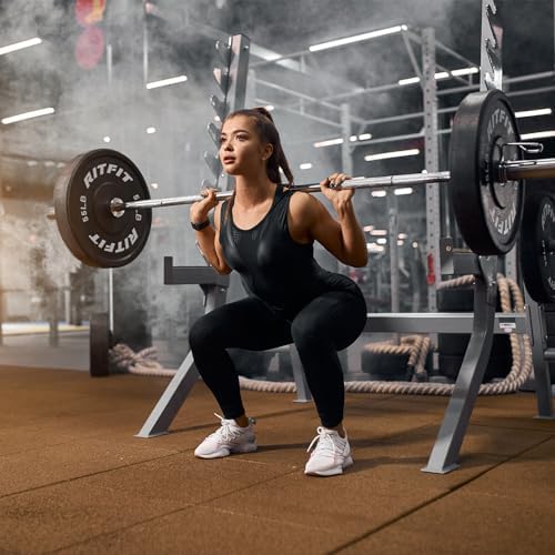 RitFit 7ft Olympic Bar with bearing weights 20 kg (~44 pounds), has a bar shaft diameter of 28 mm, and a length of 2.2 meters (7.2 feet). Needle bearings allow for a smoother, quieter spin and a more reliable turnover at maximum loads.Weight Capacity: 500lbs. 【Build to Last】 Built to the highest standard using high-quality steel materials, barbells feature an oxide finish and are built to be durable for a lifetime of quality weight lifting. 【The Best Choice for You and Your Home Gym】 The hybrid bars are intended to be used as a general-purpose bar that is suitable for the Olympic lifts but can also handle the slower, heavier power lifts, perfect for most athletes, and ideal in home gym and garage gym settings.The Volcano knurling type on the grip provides enough friction to grip. All the 2 inch weight plates are suitable for thr bar. 【6 Different Options】. RitFit Olympic Bars provide 4ft/5ft/6ft/7ft length to choose from. Whether you’re a newbie, intermediate, or elite athlete, you can find a bar good for you.We provide rackable barbells for most weightlifting exercises, also provide unrackable barbells for lightweight workouts. 【Warranty】RitFit Weight Bar is rugged and durable enough to come with a LIFETIME WARRANTY against Bending.