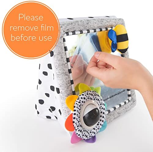 Baby-safe mirror allows baby to focus on a human face; preferred from birth    Symmetrical bee inspires vision and encourages tactile exploration    Easel back supports mirror on the floor; soft construction is perfect for baby's environment    Rainbow colors around spinning tracker ball aids in the development of visual perception    Baby begins to learn self-awareness, visual observation, and fine motor skills