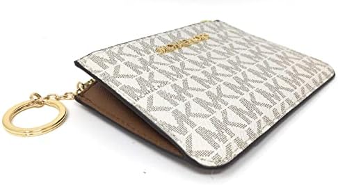 Monogram printed slim PVC coin pouch and ID holder with polished golden tone hardware Zip top compartment with card slip and a tethered split key ring inside Accented with Michael Kors iconic logo on the front Back offers a clear ID slot, (2) card slips and a larger slip Measures approximately 5" (L) x 3 3/8" (H) and has an MSRP of $118.00         #9,367 in Clothing, Shoes & Jewelry ( )   #20 in