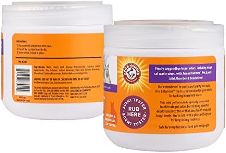 ODOR ELIMINATOR GEL ABSORBS & ELIMINATES ODORS ̶ Contain pet smells in your home easily with this simple and effective odor eliminator gel that absorbs and eliminates pet odors from the home    EASY TO USE PET AIR FRESHENER — This solid odor removing gel is as simple as as removing the top label and opening the jar to remove the inner liner. When done, screw the cap back on. For maximum odor absorption, place in a ventilated area    BAKING SODA ENHANCED FORMULA — With the signature Arm and Hammer baking soda included in this pet odor eliminator gel, you'll see just how easy it is to neutralize pet odors in your home by simply opening the jar    SAFE FOR PETS — Use Arm and Hammer Pet Scents Solid Gel Deodorizer so you can trust the products in your home. This gel deodorizer from Arm & Hammer for dogs and cats is safe for everyday use around both people and pets    LONG LASTING LAVENDER FIELDS SCENT — Enjoy the light, calm, and soothing lavender fields scent left behind after using this odor eliminator gel           #3,998 in Pet Supplies ( )   #20 in
