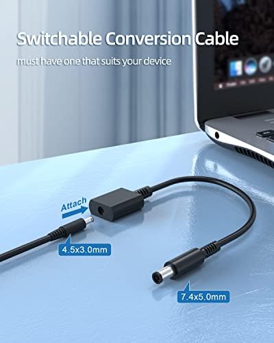 ⚡# Certified Safety # --- Certified and listed by the nationally recognized electronics safety expert UL. Only products with the top quality, workmanship & safety level in the industry can pass the extremely stringent quality tests to obtain this honorable certification. ✅# Flawless Compatibility # --- Exclusively designed switchable round connectors will fit ALL Dell laptops of 65W, 45W, with round power connectors, e.g. Dell Inspiron 15-3000 15-5000 11-3000 13-7000 14-3000 13-5000 15-7000 17-5000 Series & More. ?# Worry-Free Warranty # --- Full refund or replacement within 30 days of purchase if unsatisfied anytime for any reason. An additional 2 years warranty and dedicated customer support are right at your service. ?# Other Specs # --- Output: 19.5V 3.34A 65W (Fit for Dell laptops of 65W, 45W ), Input:100-240V, Additional Features: Charging Indicator.