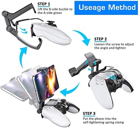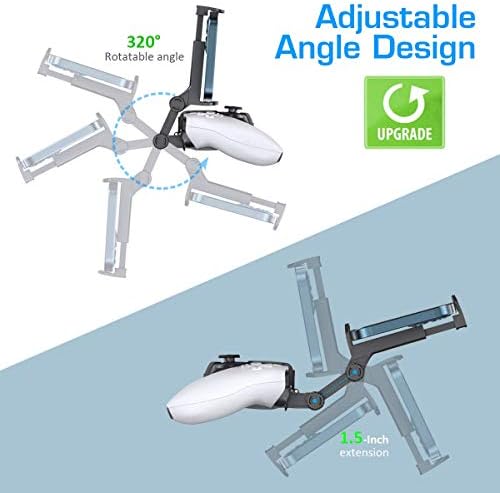 ✔️The frugal version of the PS Portal and Backbone, Taking your gaming remotely with this amazing clip!    【Design for PS5 Controller】OIVO mobile phone mount clamp for Playstation 5 controllers attachment is designed for use with Playstation remote play services. to Turn your Controller into a mobile game controller.    【Upgraded Dual Adjustable Valve】The double regulating valve upgrades the adjustable angle from 270 degrees to 320 degrees, providing a larger viewing angle. And the 1.5-inch extension of the double regulating valve increases the more comfortable gaming distance.    【Stable & Durable 】The high-quality ABS material and completely closed lock structure can firmly fix the PS5 controllers, without worrying about accidental fall.    【Phone Stand Included】 The package contains a PS5 controller phone mount, and comes with a charging cable and an external phone stand.    【NOTE】Used via Bluetooth connection. Support IOS 13.0 and above,Android 9.0 and above.(Please check your phone system version and upgrade)