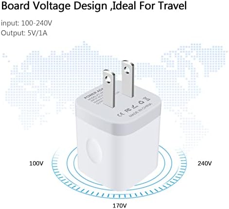 Wall Charger Adapter USB Charging Block, 5Pack Single Port USB Plug in Charger Cube Box Power Blocks Brick Charger Station Compatible with Samsung Galaxy A53 A13 A54 A20 S23 S22 S20 S21    Universal Compatibility: Single Port USB Wall Plug compatible for Samsung Galaxy Note 21/20 Ultra, S21+/S21 Plus/S21Ultra ,S20 FE/S20 Plus/S20 Ultra 5G , A20 A50 A51,A70 ,A71 ,A10e ,A11,A21,A01, S10E S10 + S8 S9 Plus S8 S9 Active ,Note 10 9 8 ,LG Stylo 6 /5/4 Plus, K51, G7 G8 V35 V40 V50 V60 thinQ, G5/G6/V20 V30 Q7 Q8 Plus ,Motorola Moto G7 Power/Paly/Plus ,G6/G6 plus, X4 Z3 Z2 Z Play /Force, Google Pixel 4XL /3A XL/3/3XL/2    Safety Certified Charger Block : this usb block charging wall plug Certified by UL, FCC, CE, ROHS, and has a fuse-protective system to defeat extreme working condition, prevent Against to Overheating, Overcharging And Over Currents, and Short-Circuit Protection, this cube charge your Phone at a high speed ,5V/1amp charging box, 1.5 times faster than conventional phone charging plug    Compact for Travel Brick: Weight is 1.59 ounces, Dimensions 1.3*1.5*1.7 inches ,Robust Bright exterior resists wear, scuffing, and scratching, this so small phone charging brick make it easy to carry and store, you can charge at home or office, lightweight and compact size make it perfect for travel and easy plug in the wall outlet    Smart Charging Adapter : the phone cube charger adapter with Smart IC Tech Automatically detects and adjusts the charging current to obtain the fastest ,and automatically stop charging when your phone power is full, which can maximumly protect your phone charger