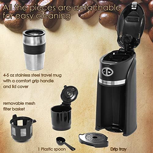 Grind And Brew Coffee Maker: To enjoy the single serve drip coffee maker with a built-in grinder, add your favorite grinds of whole coffee beans; the portable coffee maker will grind. After grinding, brewing automatically commences, protecting flavor and aroma, even during extended grinding.    Easy To Operate: With dual brewing options, you can choose whole coffee beans or coffee powder to enjoy a rich cup of aroma coffe with our grind and brew single cup coffee maker. Pre-ground coffee lovers can enjoy their favorite pre-ground coffee with this simple coffee maker.    14 Oz Tumbler: This will keep your morning coffee nice and warm for longer. The sturdy stainless steel and comfortable rubber grip make our convenient travel coffee mug a must-have accessory for every coffee lover.    Easy To Clean And Use: The coffee machine with a grinder has an illuminated one-touch button. Our electric coffee brewer features an auto shut-off function that will shut off your personal drip coffee maker. All parts of the single cup coffee maker, including the removable bin grinding chamber, mesh filter basket, are easy to clean.    Customer Support: Mixpresso personal single cup coffeemaker is covered under our 1-year warranty!
