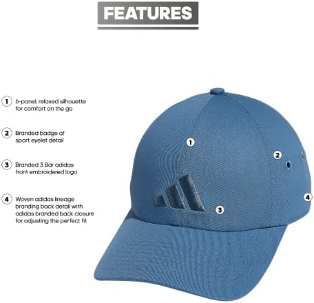 6-panel, relaxed silhouette for comfort on the go Woven adidas lineage branding back detail with adidas branded back closure for adjusting the perfect fit Branded badge of sport eyelet detail Branded 3 Bar adidas front embroidered logo         #615,502 in Clothing, Shoes & Jewelry ( )   #3,298 in