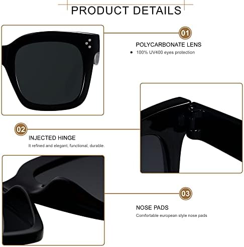 ANDWOOD Oversized Sunglasses For Women is fashion style brand designer,It is suitable for big face, show womans unique and fashion.The most fashionable classic retro design, the perfect cover your eyes. [UV Protective] Big square sunglasses with UV400 rated protection, can block 100% of both UVA and UVB radiation and fully protect against harmful ultraviolet rays. Ladies will love to wear these big sun glasses in the warm light of summer or on those cold winter mornings. HIGH QUALITY - Retro Square Sunglasses used lightweight plastic material have a durable frame, thick but slim, not easily deformed, long wear does not press nose give womens a unique and comfortable wearing experience. The Oversize square shape frame makes the overall look of the sun glasses more stylish, trendy, cool, sexy and cute. Perfect Fit - These Large Sunglasses is suitable for walking, traveling, driving, shopping, taking photos, beach, party, and other outdoor activities, etc; also be a nice gift for festivals. Womens Vintage Sunglasses: ANDWOOD fashion shades we provide 30 days money back warranty after you purchase it . If you have any questions about our sun glasses , please do not to hesitate and feel free to contact us.         #10,989 in Clothing, Shoes & Jewelry ( )   #112 in
