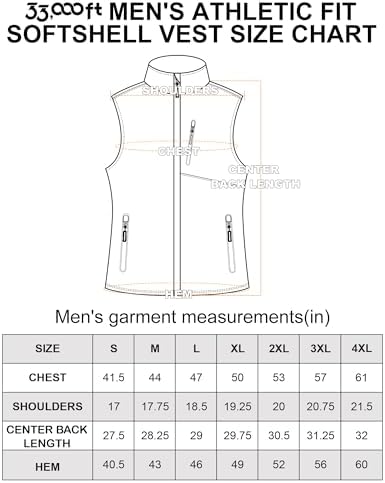 WINDPROOF & LIGHTWEIGHT: This 33,000ft softshell vest is crafted with windproof lightweight fabric that keeps you warm and dry. WATER-RESISTANT & BREATHABLE: The outer fabric is treated to repel water and breathe, keeps your core comfortable and dry in the light rain. This men's vest is lined with mesh fabric to provide air ventilation. 4-WAY STRETCH - The shell is made of 4-way stretchy fabric, allows a wide range of motion. You won't feel any restriction. Elastic cuffs and flexible soft fabric help you move freely. Our 33,000ft sleeveless windbreaker is especially suitable for outdoor hiking, trail running, camping, climbing, cycling, fishing, golf, travel, work, jogging, etc. RUNNING VEST FOR MEN WITH REFLECTIVE FEATURES- There's a stand neck collar with a wind guard under the zipper, drawcord hem that help seal out the elements and adjust the fit. It comes with pretty colors with reflective contrast piping that provides high visibility when running at dark. 6 FUNCTIONAL POCKETS - 2 zip-up hand pockets, 2 internal pockets, 1 large zip back pocket and 1 chest zip pocket keep your stuff safe and secure. They are perfect for carrying your essentials such as a cellphone, wallet, keys, etc.         #11,413 in Clothing, Shoes & Jewelry ( )   #5 in