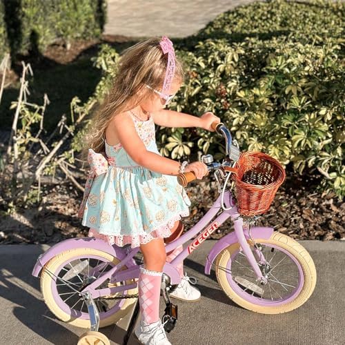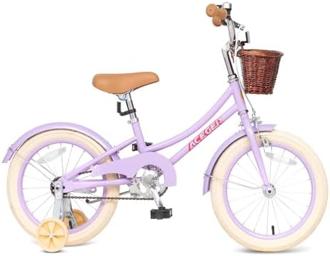 ACEGER Girls Bike with Basket, Kids Bicycle for 3-13 Years, Included Coaster Brake & Caliper Brake, 14 16 18 Inch with Training Wheels, 20 Inch with Kickstand but no Training Wheels