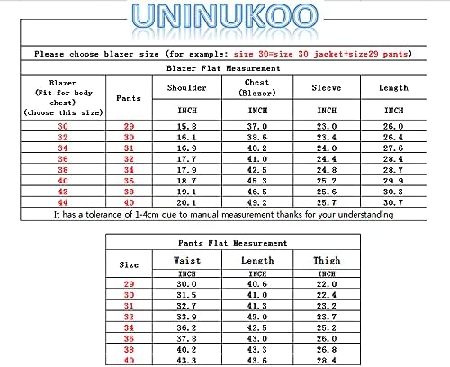 【How To Choose Size】Please choose the size based on your chest.【size 30 = 30 blazer +29 pants】.【size 32 = 32 blazer +30 pants】.【size 34 = 34 blazer +31 pants】.【size 36 = 36 blazer +32 pants】.【size 38 = 38 blazer +34 pants】.【size 40 = 40 blazer +36 pants】.【size 42 = 42 blazer +38 pants】.【size 44 = 44 blazer +40 pants】. 【3 Piece Suit 】1* 1 Button Business Jacket+1* Slim Fitted Trousers+1*Formal Vest.Our suits are sold in sets. If you encounter any sizing or other issues, please contact us and we will try our best to accommodate your request within 24 hours. 【Design】Suit Blazer: 1 Button Closure, Notch Lapel,Soft Full Inner Lining; Pants: Flat Front, Slim Fit; Waistcoat: Adjustable back buckle.Our stylish and modern men's suits are carefully crafted using 3D cutting technology to bring you comfort while also giving you an elegant and stylish look. 【Suitable Occasions】This men suits slim fit 3 Piece is suitable for multiple occasions, such as wedding,business,daily life,parties, prom,casual,dinner,homecoming. 【Care Instruction】Dry cleaning or hand-washing in cold water.         #763,524 in Clothing, Shoes & Jewelry ( )   #708 in