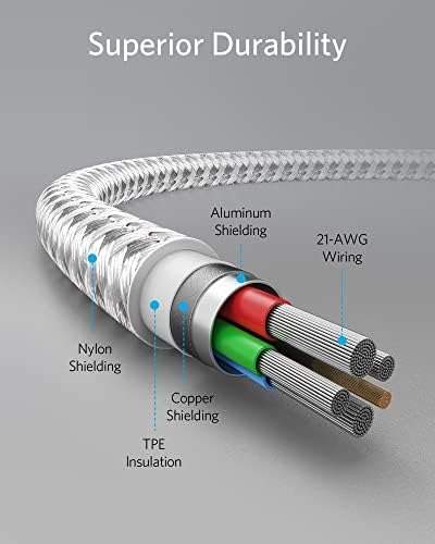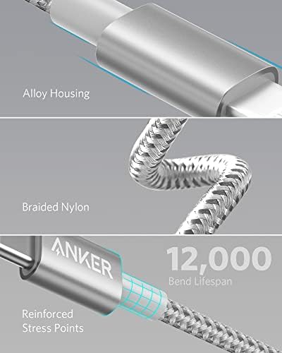 Anker Nylon USB C to Lightning Cable [10ft MFi Certified] for iPhone 13 13 Pro 12 Pro Max 12 11 X XS XR 8 Plus, AirPods Pro, Supports Power Delivery (Silver)