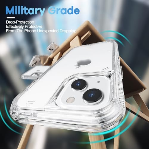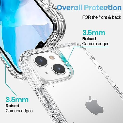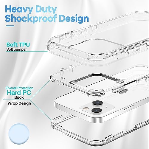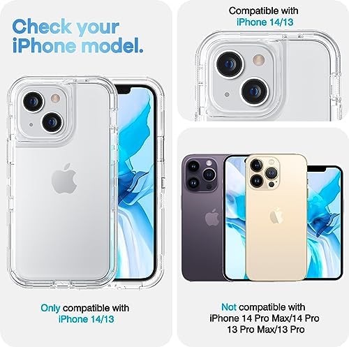 [Compatible with iPhone 14/13]Precise cutouts for speakers,charging ports,audio ports, and buttons for your convenience.    [Full Body Protection]3 in 1 Armor construction, inner shell & Soft TPU outer cover shell, offer dual layer protecion, effectively prevents your iPhone 14/13 from impact and scraches.[NOTE: NO front cover/ NO 3rd part screen protector included]    [Crystal Design]This clear case shows the original color of your phone,keep your iPhone 14/13 in natural look with raised lips around screen and camera, offer a better protection.    [Perfect Fit]Exact cutouts for all ports and buttons.Easy to access all original function with full cover protection,charging without removing case.There are dustproof flaps on USB and ring/vibrate switch, keep dust out of your phone.    [Amazon After-Sales Service]Any defective for this transparent case, please feel free to message us, we will offer you a suitable solution within 1 business day.