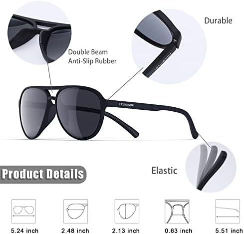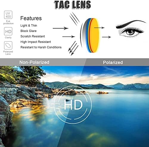 Clarity and comfort: The TAC lenses comply with the UV400 standard, avoiding eye fatigue and headaches; the polarisation effect is greater than 99% which can enhance visual sensitivity by reducing the glare reflected from objects, making what is seen clearer and brighter Upgraded material: Upgraded TAC material, unlike ordinary TAC and PC lenses, they are better in terms of clarity, protection, comfort, and applicability; TR 90 frame, an ultra-lightweight material that is flexible and hard to impact, not easily abrade; the nose rest and the feet of the frame are made of rubber to eliminate slippage High stability: Stable in high, low and humid environments, the frames and lenses relieve external stresses and are less likely to deform, shrink, twist, crack and react Multi applications: TAC coating that does not absorb water easily, thus avoiding water spray from blocking your vision, making them suitable for rainy days, beaches, yachting trips, etc. And they are stylish and suitable for casual and outdoor occasions Package: Our packaging has been upgraded to be more sophisticated; now you can get a textured sunglasses case*1, leather pouch*1, sunglasses*1, glasses drawstring storage bag*1, soft cleaning cloth*1, polarisation test card, instruction manual*1, perfect for your gift giving         #10,038 in Clothing, Shoes & Jewelry ( )   #50 in   #144 in