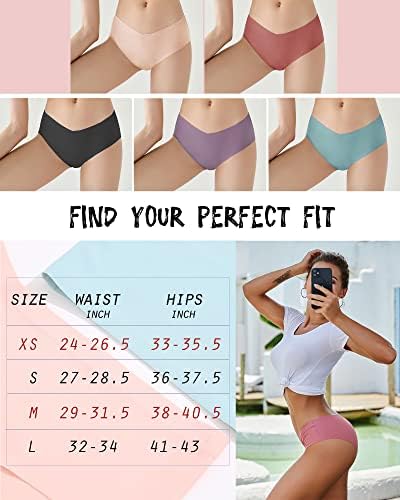 Seamless Underwear: [Waist Measurements]: XS = 24 - 26.5"; S = 27 - 28.5"; M = 29-31.5" ; L= 32-34" . [Hip Measurements]: XS= 33-35.5"; S = 36-37.5" ; M= 38-40.5" ; L = 41-43". Womens No Show Bikini Panties: This ROSYCORAL underwear provides a seamless and no show no ride up look, which can take you through your workout and into the rest of the day comfortably, and our super soft and breathable material that stay dry and in place, you will forget they’re even there. Laser Cut Cheeky: Made with super soft smooth fabrics (90% Nylon and 10% Spandex) and created with a four-way stretch that moves with you,plus flatters your curves. V Cut Hipster for Women: These 5 pack low rise and no show panties created with a V cut and one piece design that sit below your belly without digging into your skin. It’s great for you to wear under legging or dress,or even when you are pregnant. Womens Underwear: ROSYCORAL measurement results might different from amazon's. Please kindly refer to the size chart showed on the product image. Just choose the most appropriate size to get more comfortable style.         #35,874 in Clothing, Shoes & Jewelry ( )   #114 in