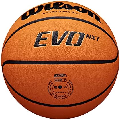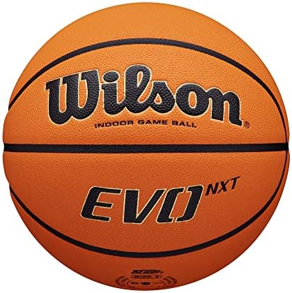 100% Composite Leather    Imported    WILSON NCAA Evo NXT Indoor Game Basketball - Size 6 - 28.5"    Extended Range Tech: Optimally balanced, super soft core construction generates more spin with less effort at any range and a softer touch around the rim.    Micro-Touch Composite Leather: A Micro-Touch Cover provides an extra layer of grip and moisture management.    Super Soft Core: Extra cushioning allows your fingers to dig deeper into the surface for better control and a softer feel, helping every player find the shooters touch.    Composite Pebbled Channels: Composite channels are pebbled instead of smooth, creating a consistent texture over the entire surface of the ball for unparalleled control.