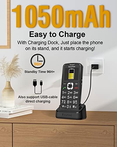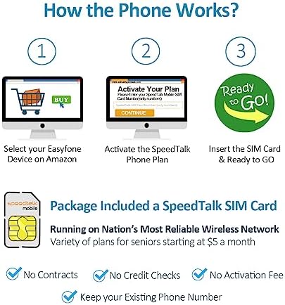 Clear and loud sound; Easy-to-Use operating system.    Classic bar-type cell phone focus on calling and texting, No Internet access and without camera.    1050mAh real capacity battery with an easy charging dock, Long time standby and easy to charge.    Additional SOS button; Eight Speed dial buttons (8 number keys can be set as dedicated direct dial keys).    Multi useful functions: FM Radio, Alarm clock, MP3 Player, Notes, Calculator, Calendar, Bluetooth, Flashlight, SOS feature and Speed dial.    Unlocked to T-Mobile, MetroPCS, SpeedTalk and Tello Mobile, This phone work great with SpeedTalk (SIM Card Included) which running on T-Mobile network, Variety of plans starting at $5 a month, Option for Keep your existing phone number or Get a New phone number.    Please note that this phone is NOT compatible with AT&T, Cricket or with CDMA Networks like Verizon, Sprint, and Boost Mobile.