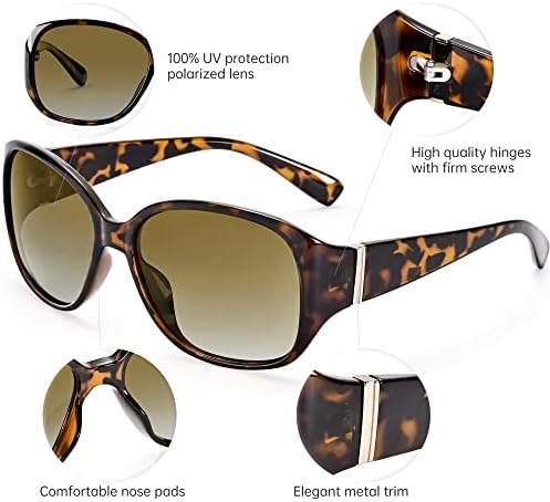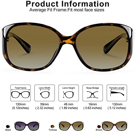[Two Paips Gifted Packing] 2 pairs women classic style sunglasses with matching pouch. You can keep one pair by yourself and the other as best gift for family or friends. [High-Definition UV400 Tac Polarized Lenses] The retro large lady sun shades with polarized, non-reflective lens give your eyes the great sun protection. [High Level Frame Quality]Injection frame is super light PC material with optical quality hinge which can pass the most strict hinge life testing and compliance with CE standard. You will definitely feel worthwhile after comparing. [Perfect Ourtdoor Decoration]The trendy designer sunglasses with delicate metal trim on the temple give you a casual but classy vibe.Suitable for outdoor activities such as city walk, driving, travelling, sport, shopping. [Product Dimension]Lens Width: 59mm( 2.32 inches) | Lens Height: 48 mm( 1.89 inches) | Temple Length: 130mm( 5.12 inches) | Nose Bridge: 16mm( 0.63 inches) | Total Frame Length:130mm (5.12inches).         #23,680 in Clothing, Shoes & Jewelry ( )   #218 in