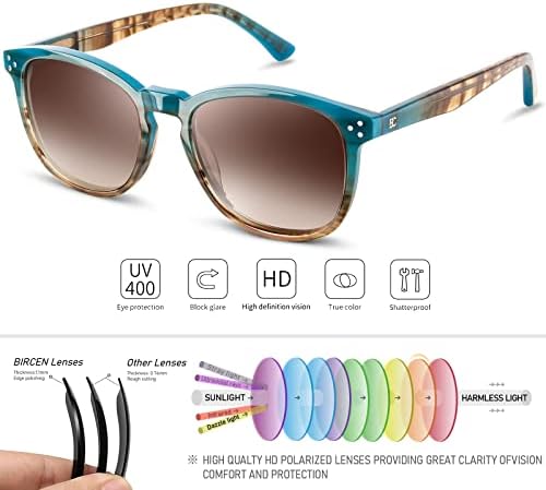 Acetate frame: Not ordinary plastic frame! Acetate is a high class material which full of shinny and scratch resistant,not easy to leave fingerprint on it and quite easy to manage,so the vintage shades will always looks new even wearing it a long time. this durable lightweight frame with one-piece nose pad will also enable a comfortable and head no-pressure wearing experience. Polarized UV protection HD lens: Bircenpro cateye womens sunglasses not only make you good-looking and cool, but also will provide a good care of your eyes! we use the exported polarized TAC lenses, filter out 100% UV400, decrease the glare,reflective and dazzle light, make your eyes comfortable, rebuilt a clear vision for you. All-match fashion sunglasses: Bircenpro polarized ladies sun glasses could fit to big and small face,will become a highlight to complete a stylish appearance, we have many colors for your option,brown,back ,pink,red,blue,purple and classic tortoise shell color, those designer sunglasses will make you looks elegant,gentle,unique and cute. User Friendly round sunglasses: in order to allot more cost to the quality control procedure and be responsible to customers, we remove the behavior of over-packing, benefit the customer to the most. Worry-free after-sale service: All Bircenpro customers enjoy 30 Days Money Back Guarantee for our polarized sunglasses.And if quality problems occur after 30 days, just contact us (reply to you in a workday), we will provide a good solution for that. it is risk-free choice for you to buy Bircenpro women sunglasses.